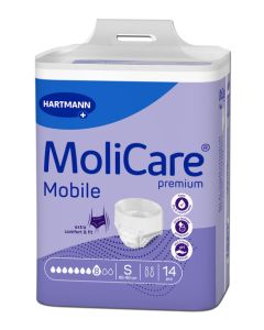 Hartmann Molicare Premium Mobile est une gamme de slip absorbant conçue pour les personnes à mobilité réduite ou autonomes. Avec des matières ultra douces ainsi qu’un voile externe intraversable et micro aéré permettant une respiration de la peau, cette protection vous offre une sécurité optimale grâce à ses barrières anti-fuites et son triple coussin absorbant "Dry Plus" et une neutralisation des odeurs grâce aux capteurs ultra absorbants. Son témoin d’humidité vous indique le bon moment pour changer la protection.