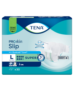 Tena Slip Proskin est une gamme de changes complets avec attaches repositionnables pour un ajustement parfait, un confort et une protection contre les fuites pour des personnes à mobilité réduite ou dépendantes. Sa technologie FeelDry Advanced™ confère une absorption rapide des liquides maintenant la peau sèche et saine. Le voile extérieur ConfioAir™ 100 % respirant laisse la peau respirer. Equipée d’un indicateur d’humidité signalant la nécessité de le remplacer, il neutralise également les odeurs.