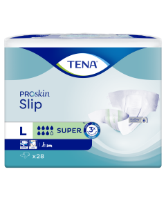 Tena Slip Proskin est une gamme de changes complets avec attaches repositionnables pour un ajustement parfait, un confort et une protection contre les fuites pour des personnes à mobilité réduite ou dépendantes. Sa technologie FeelDry Advanced™ confère une absorption rapide des liquides maintenant la peau sèche et saine. Le voile extérieur ConfioAir™ 100 % respirant laisse la peau respirer. Equipée d’un indicateur d’humidité signalant la nécessité de le remplacer, il neutralise également les odeurs.